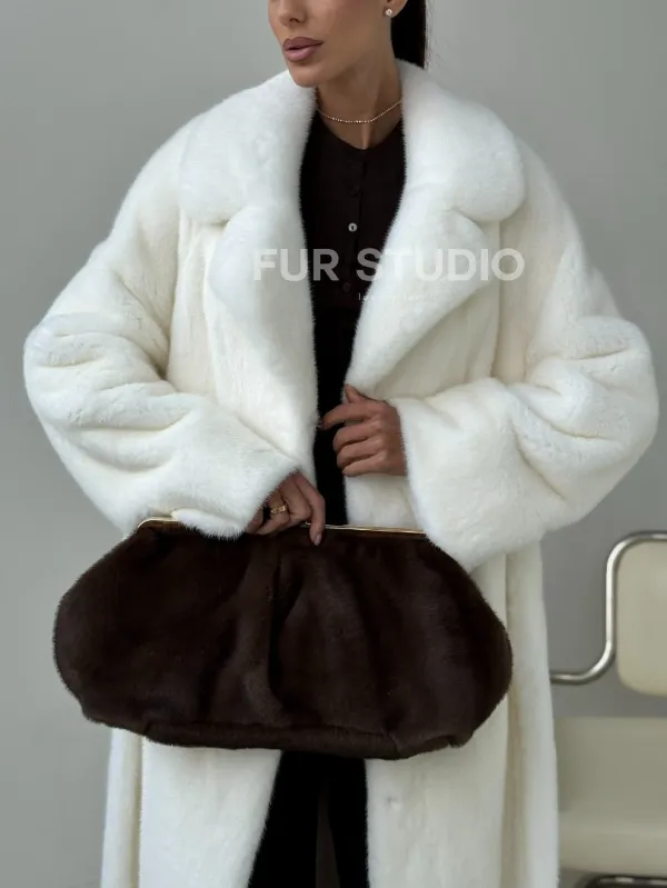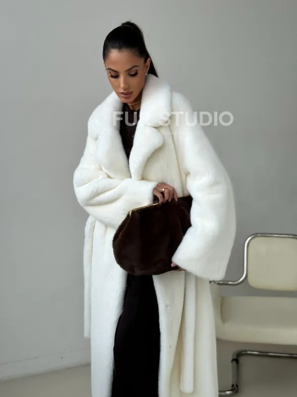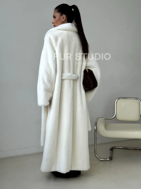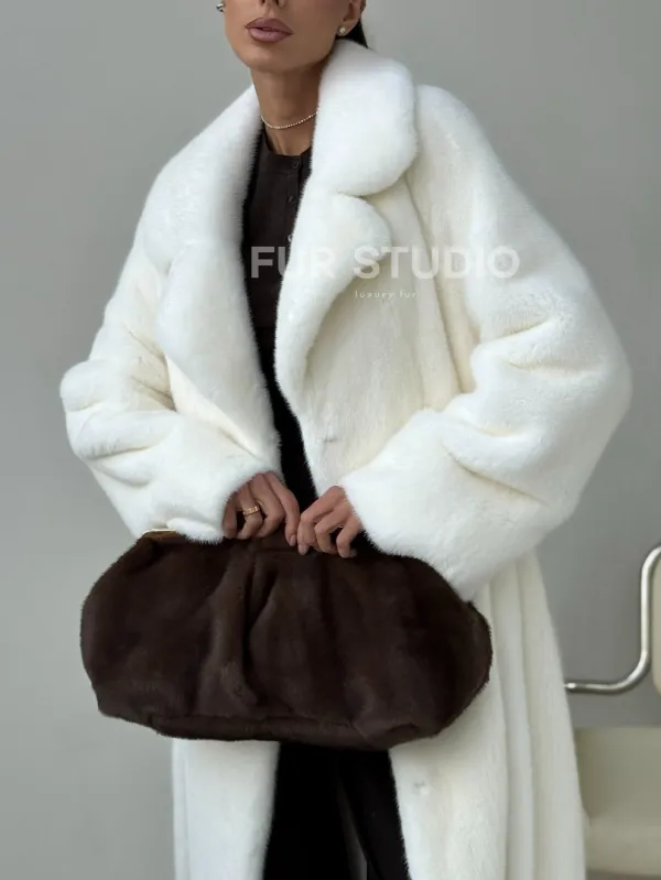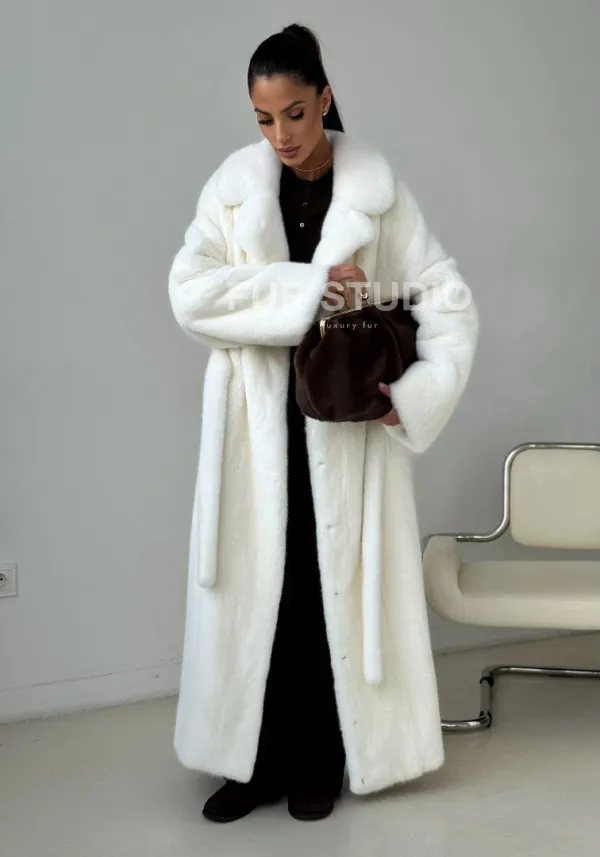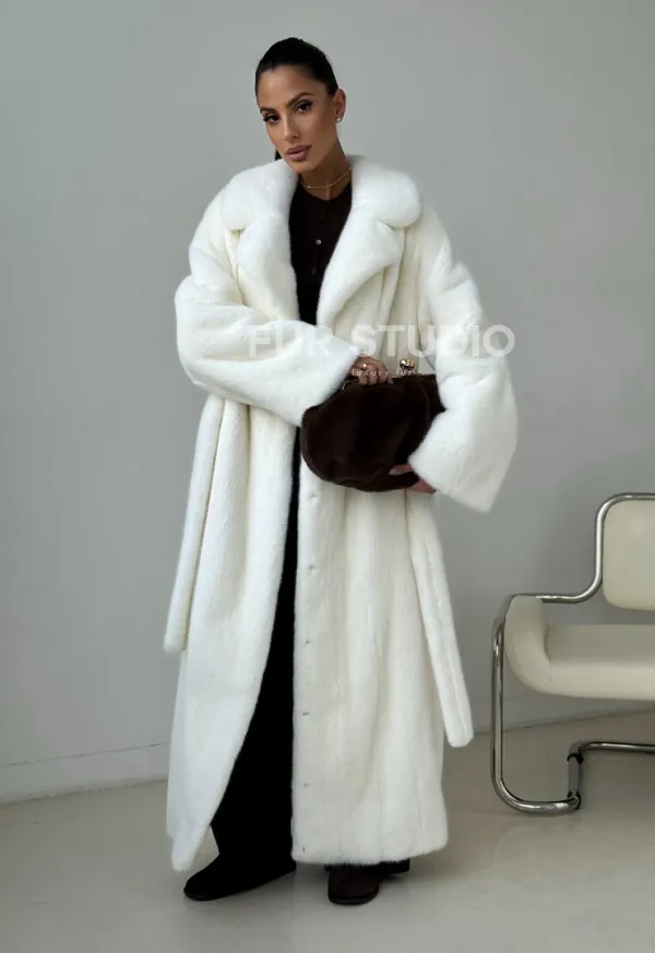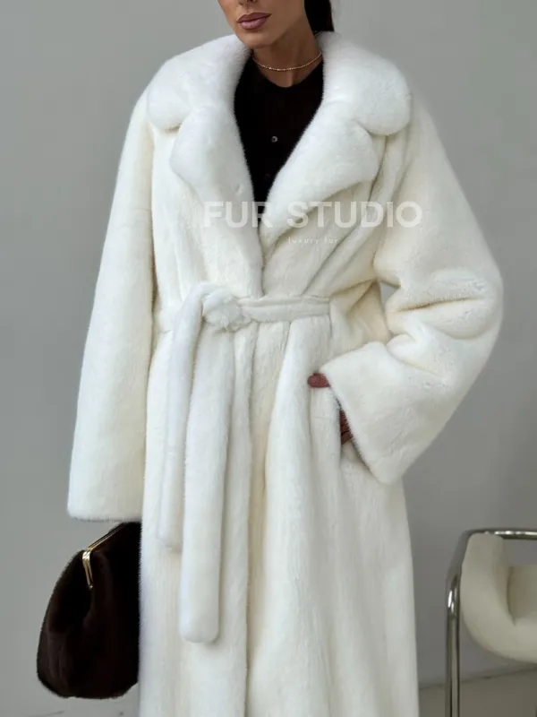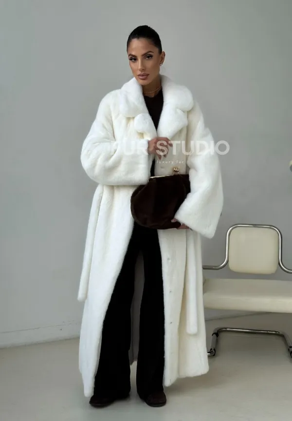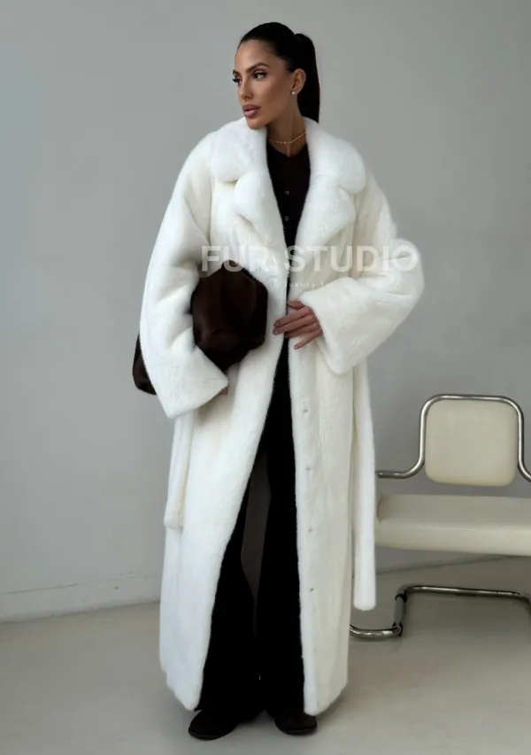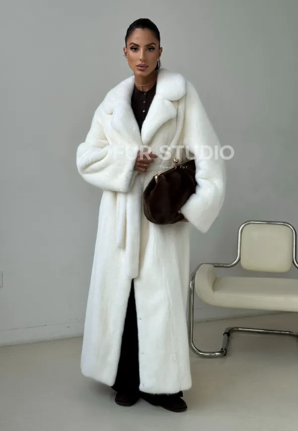 Белая длинная норковая шуба 102397