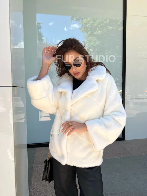 Белая короткая норковая шуба 100336
