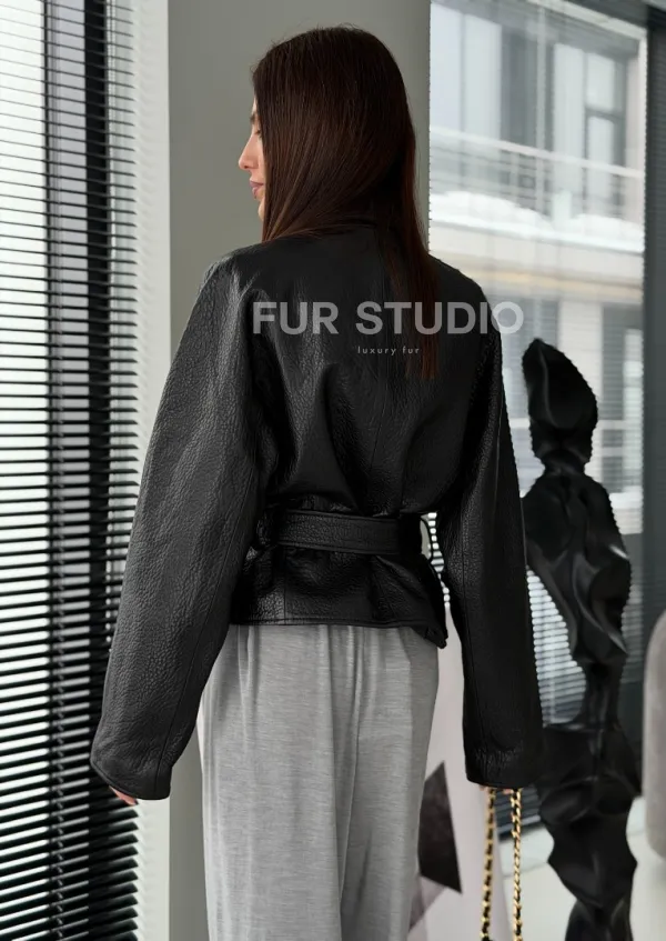 Черная куртка из натуральной кожи доступна для покупки в нашем шоуруме Furs Studio в , где также предоставляется удобная доставка во все города России.