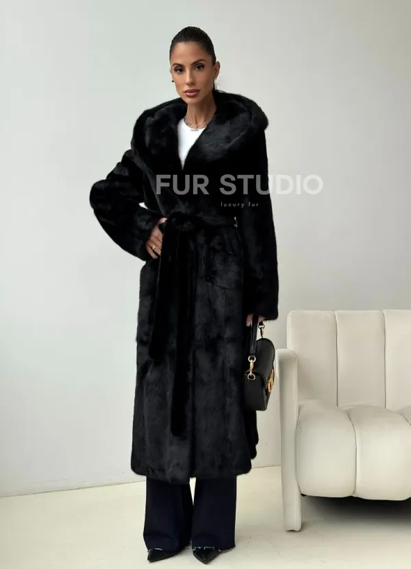 Черная норковая шуба с капюшоном 102445