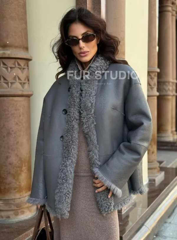 Дубленка серого цвета - двухсторонняя 102277
