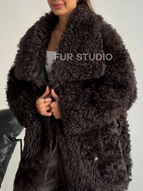 Дублёнка коричневая из овчины - тиградо доступна для покупки в нашем шоуруме Furs Studio в , а также предлагается удобная доставка во все города России. Обогатите свой гардероб этой дубленкой, которая прослужит вам многие годы, добавив немного роскоши в ваш повседневный образ.