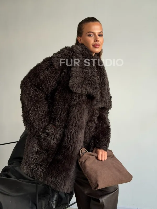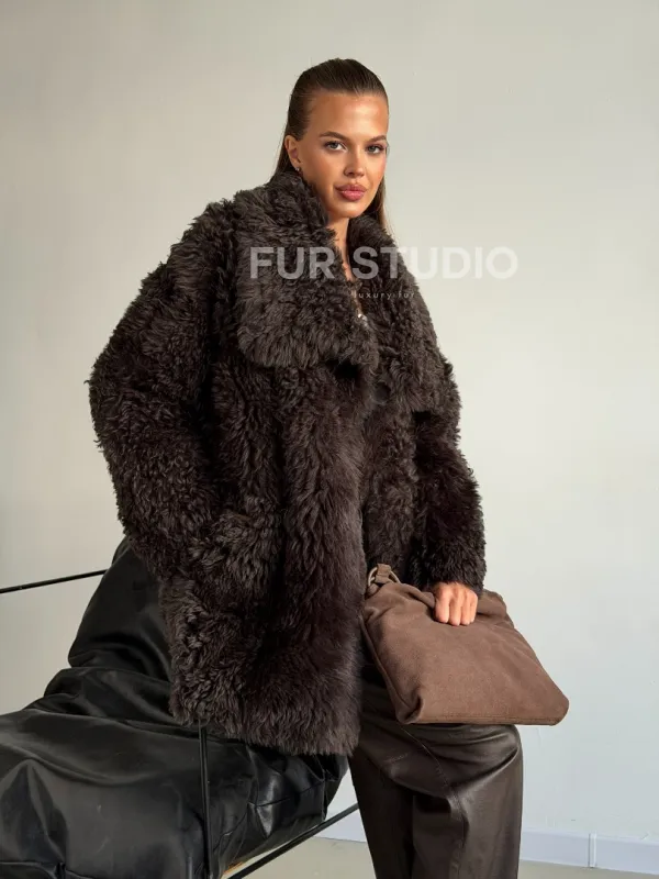 Дублёнка коричневая из овчины - тиградо 102603