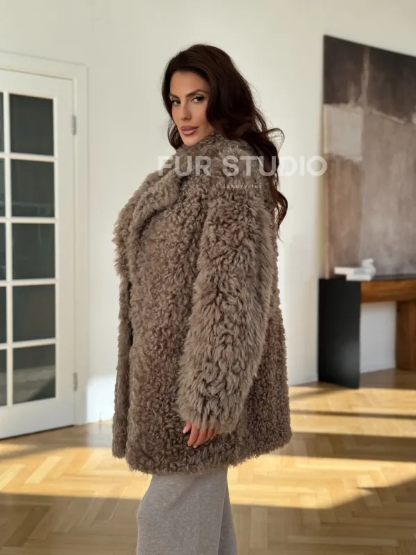 Двусторонняя шуба - дублёнка из меха испанского тиградо 101436