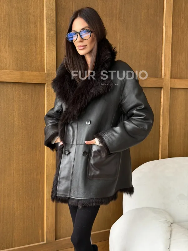 Двухсторонняя коричневая дубленка 102761