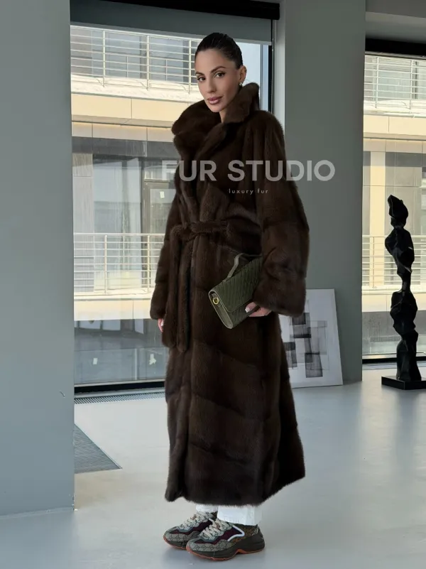 Коричневая норковая шуба - кимоно доступна для покупки в нашем шоуруме Furs Studio в . У нас так же есть доставка во все города России. Добавьте немного роскоши в свой гардероб с этой шубой, которая будет служить вам многие годы.