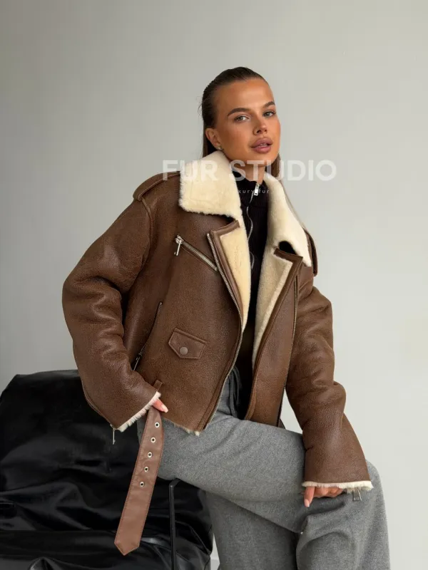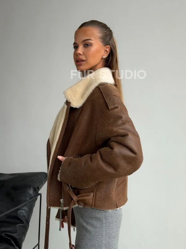 Короткая косуха-дубленка из овчины 102602
