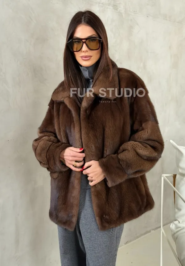 Мех данной шубы аукционная норка, цвет коричневый. Предлагается в размерах от 42 до 50. Длина модели 65-70 см, что выгодно подчеркивает фигуру девушек. Эта модель идеально подойдет для девушек и женщин, предпочитающих роскошные натуральные меха.