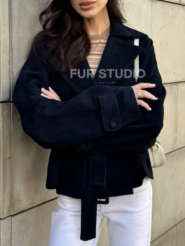 Модная куртка из замшевой кожи доступна для покупки в нашем шоуруме Furs Studio в , где также предоставляется удобная доставка во все города России.