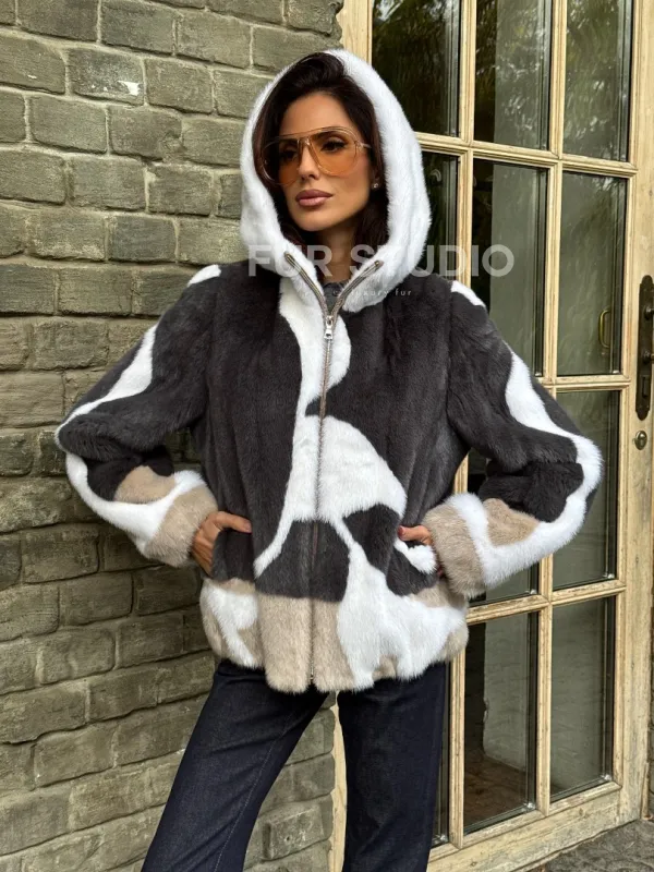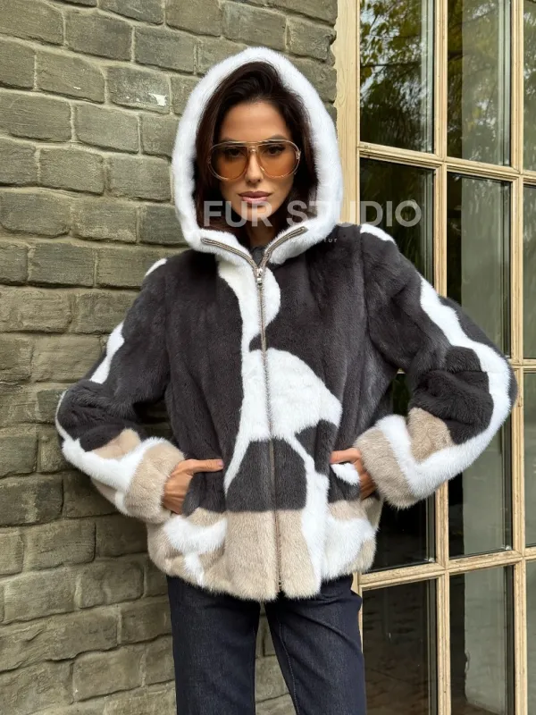 Норковая куртка с капюшоном 102334