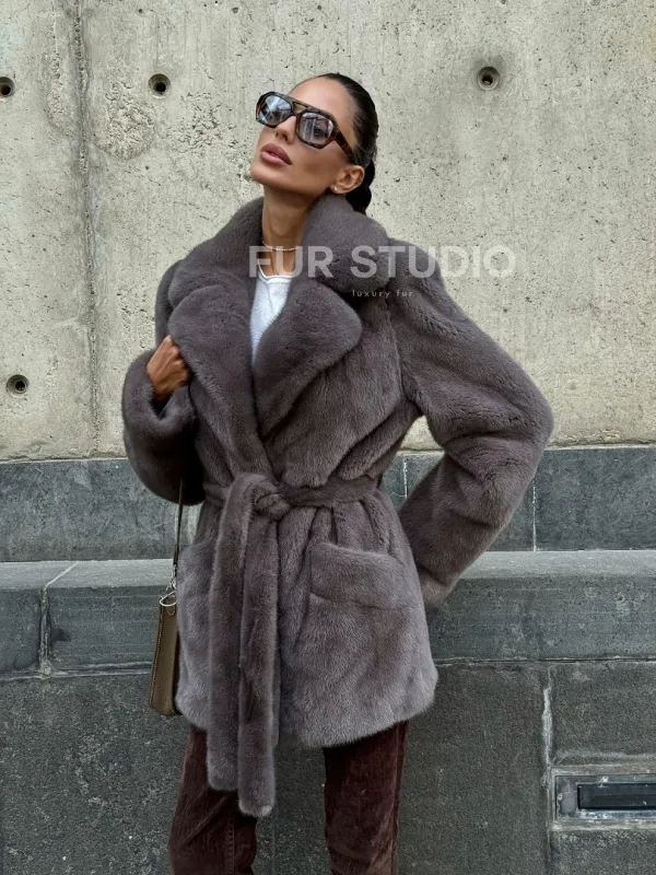 Норковая шуба лавандового цвета - VELVET 102110