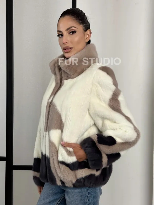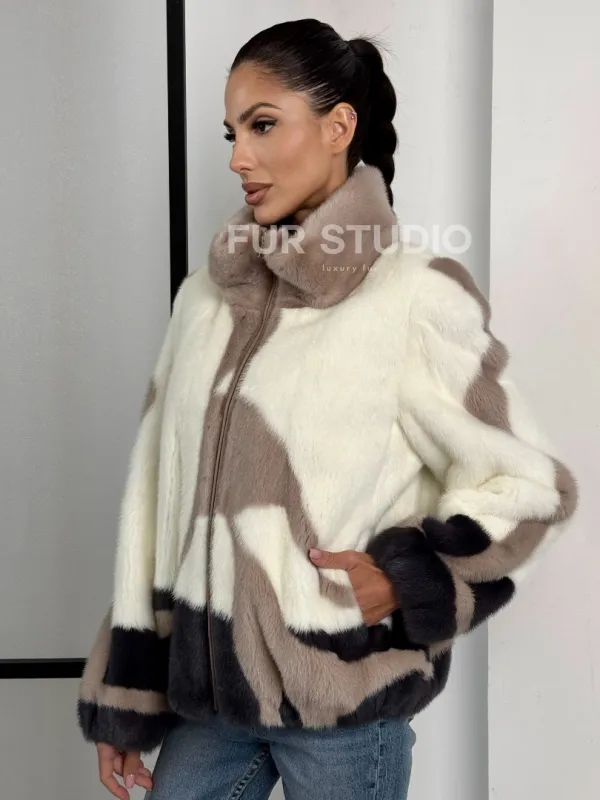 Норковый бомбер на молнии стойка воротник 101373