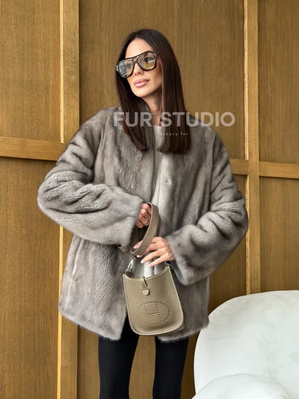 Норковый жакет в натуральном сером цвете 102737
