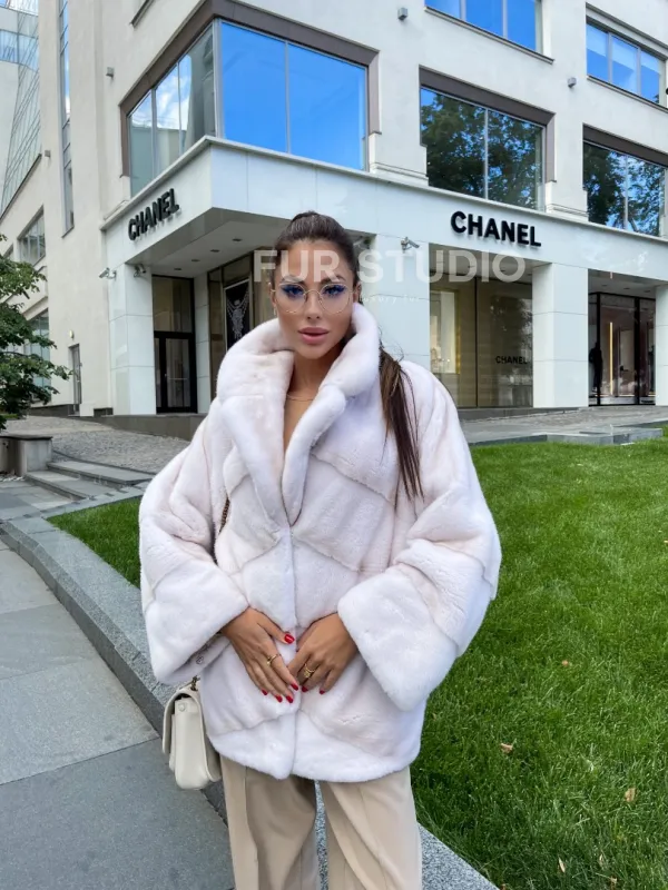 Мех данной шубы аукционная норка, цвет белый. Предлагается в размерах от 40 до 50. Длина модели 70-75 см, что выгодно подчеркивает фигуру девушек. Эта модель идеально подойдет для девушек и женщин, предпочитающих роскошные натуральные меха.