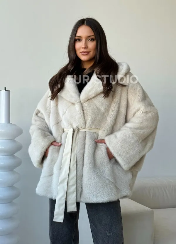 Шуба автоледи под пояс из меха норки 102497
