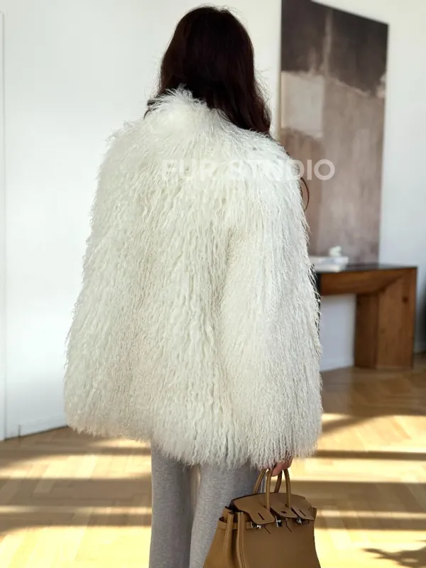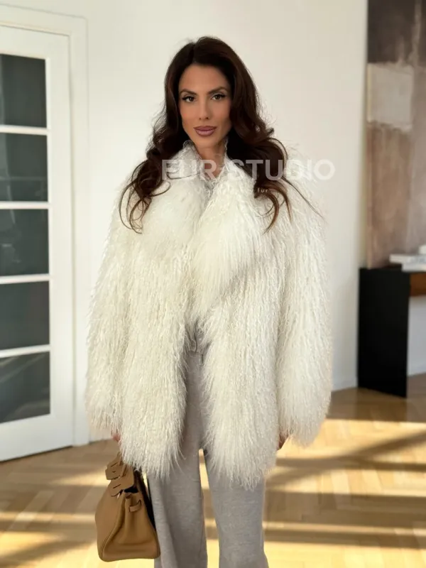 Шуба из ламы белая 102322