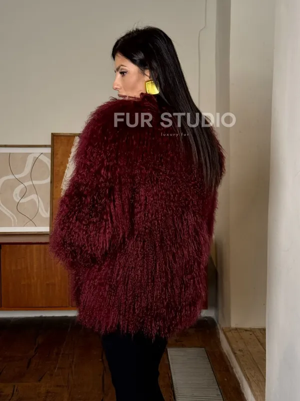 Шуба из меха ламы цвет Burgundy 101443