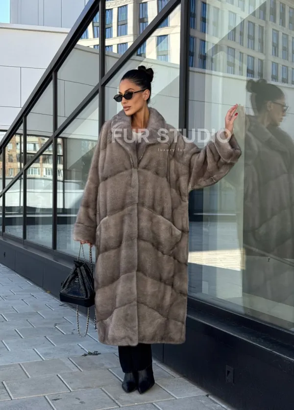 Шуба из меха норки в стиле «Oversize» - цвет сильвер 100990