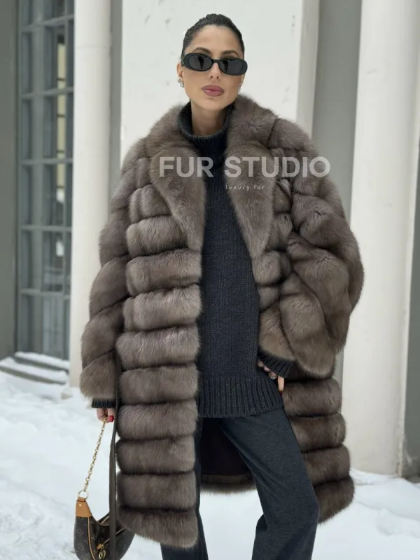Примерять и купить шубу миди из натурального меха соболя в цвете тортор вы можете в нашем шоуруме студии меха Fur Studio в Москве или у себя дома. Для дистанционного заказа понадобятся мерки, по которым шубу подгонят под особенности фигуры.
