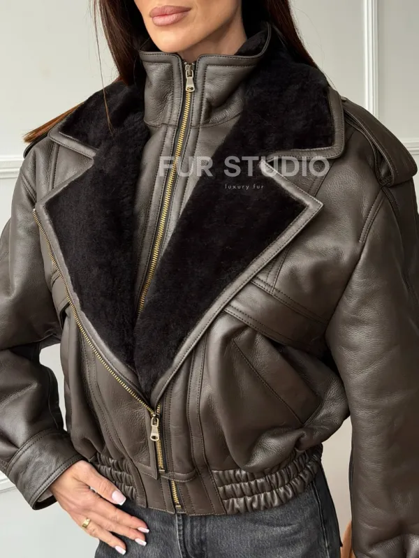 Стильная куртка - дубленка из овчины 102762