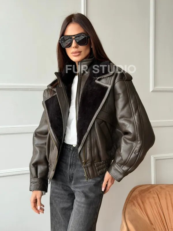 Стильная куртка - дубленка из овчины. Модель предлагается в размерах от 42 до 48. Оптимальная длина моделей 55-60 см подчеркивает линии вашей фигуры. Эта дубленка станет неотъемлемой частью гардероба для тех, кто предпочитает роскошь и утонченность натуральной кожи.