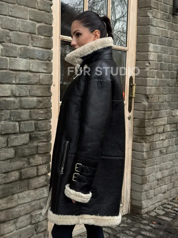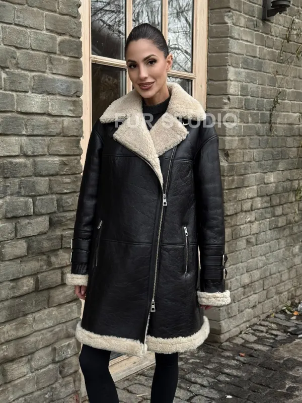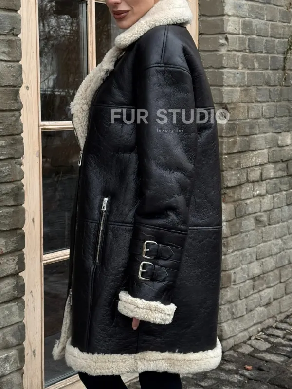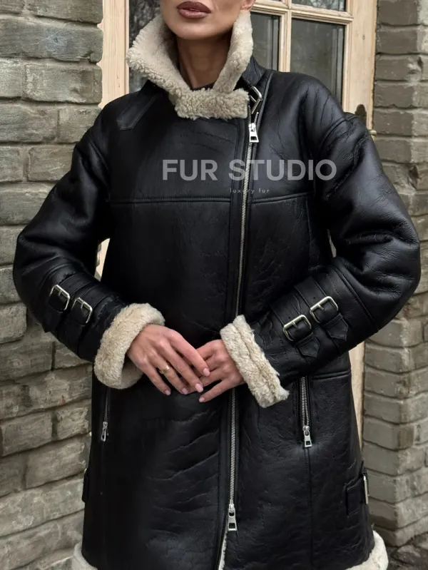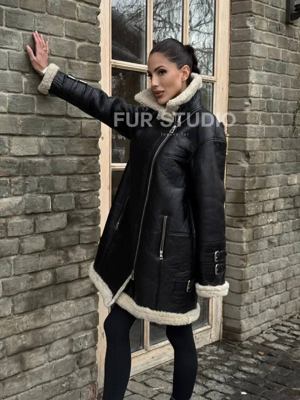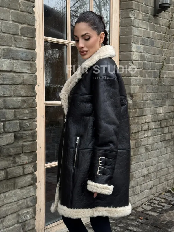 Удлиненная дубленка на белой овчине – выбор стильных и уверенных в себе девушек, которые любят внимание. Свободный крой позволяет спрятать лишние килограммы и при этом выглядеть женственно, неординарно. Удлиненная модель зрительно увеличивает рост владелицы. Широкий воротник подчеркнет изящность шеи и защитит ее от ветра. Теплая овчина не даст замерзнуть в самую холодную зиму.