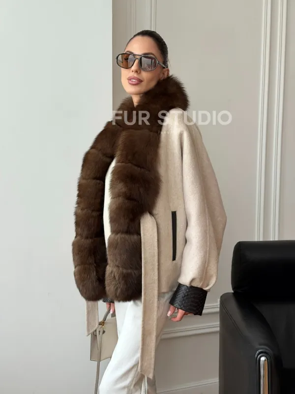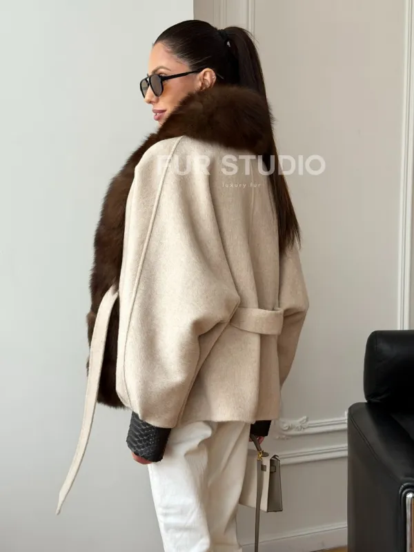 Женское шерстяное полупальто с мехом 102710